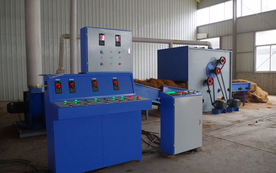 本生產(chǎn)線是利用椰棕纖維和低熔點(diǎn)環(huán)保纖維通過高溫?zé)犸L(fēng)穿透粘合定型而成,椰棕墊是床上用品、服裝家具、沙發(fā)高級(jí)的芯墊材料