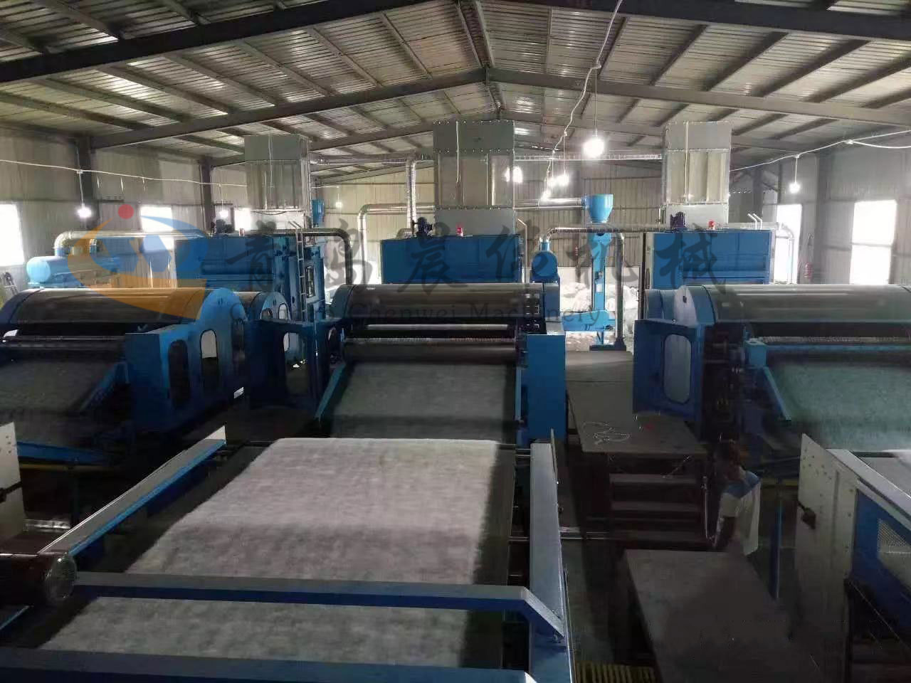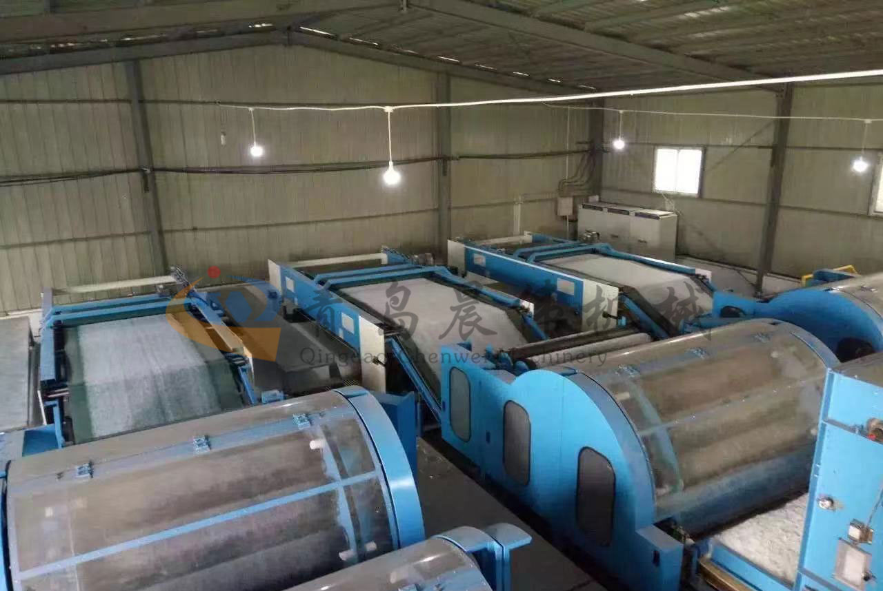 該生產(chǎn)線用于生產(chǎn)高檔家用紡織材料仿絲棉, 仿絲棉廣泛應(yīng)用于服裝、床上用品、家具等。根據(jù)客戶要求可分四機(jī)頭、六機(jī)頭、七機(jī)頭等。機(jī)頭越多,產(chǎn)量越高。