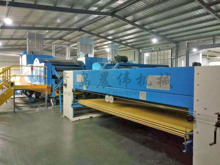 5. CWPW-鋪網(wǎng)機:用于將梳理纖網(wǎng)通過移動小車交叉折疊為所需幅寬和定量的多層纖網(wǎng),以供后道工序使用。鋪網(wǎng)輥采用特殊結(jié)構(gòu),加裝壓網(wǎng)輥和導流板,不飄網(wǎng)不起皺,五只大功率電機精確控制各部件的運動,電動輸出簾高度調(diào)節(jié)裝置