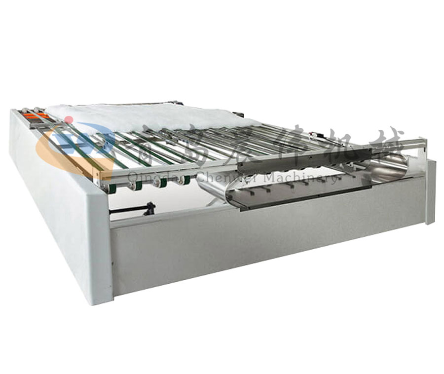 7. CWZT-裝套機:將定好寬幅經(jīng)過烘箱定型成品的棉胎裝進被套,自動裝套。